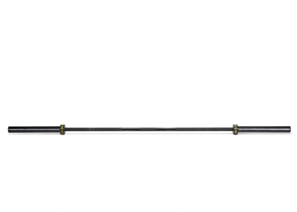 Fabricada em barras de óxido preto duráveis. As mangas revestidas de cromo duro premium encaixam-se em discos de tamanho olímpico padrão.