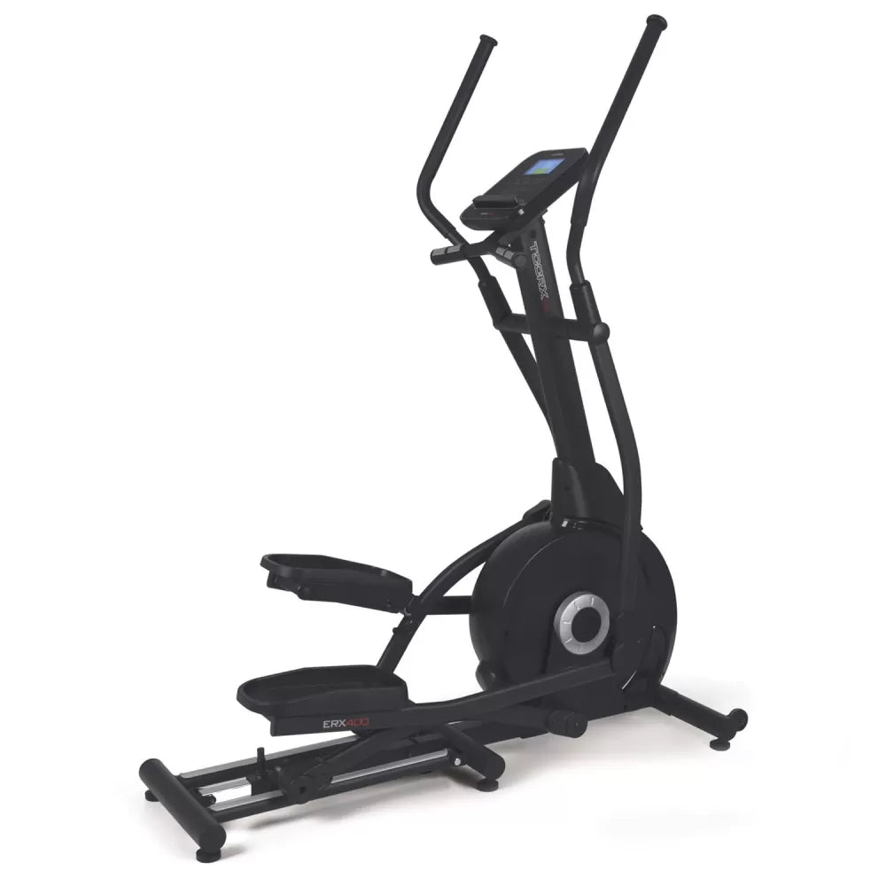 A Elíptica Erx 400 tem um volante magnético dianteiro de 16 kg e resistência magnética ajustável electronicamente directamente a partir do visor, com 16 níveis de esforço diferentes.