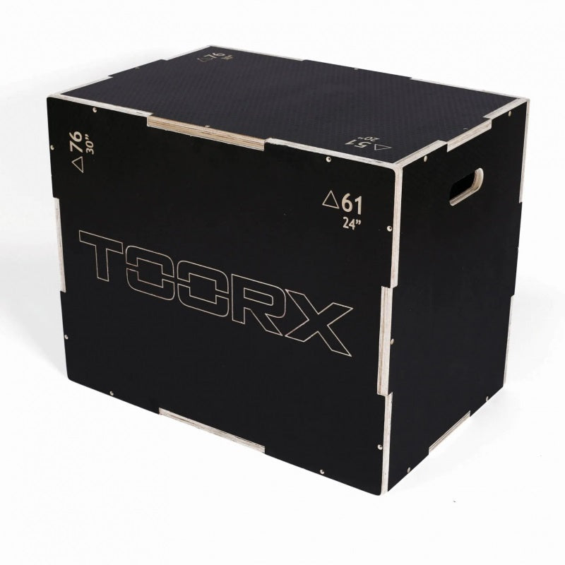 A Caixa de pliometria 3 em 1 da TOORX é ajustável em altura para exercícios pliométricos.