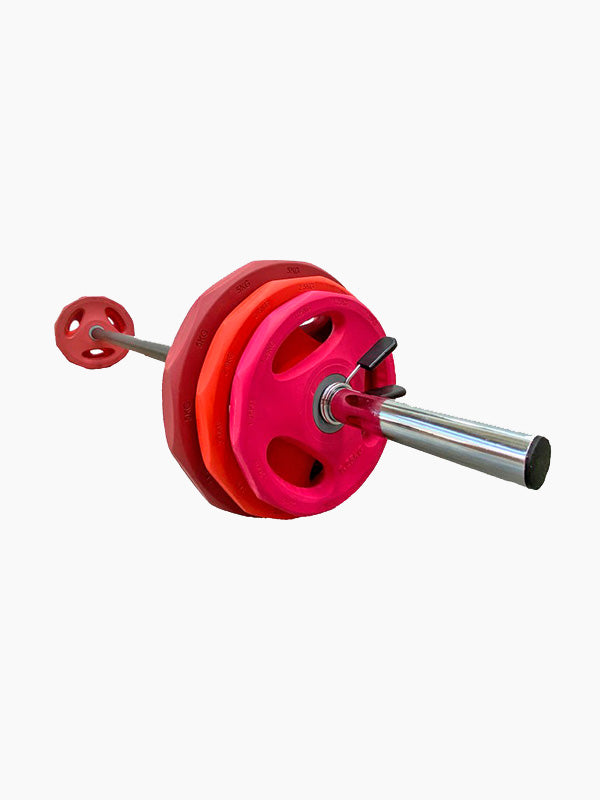 Conjunto completo para treino de body pump ou treino físico aeróbio combinado com cargas.