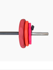 Este conjunto inclui 3 pares de discos, de diferentes pesos diferenciados por cores, 2 discos de 1,25 kg e 2 discos de 2,5 kg e 2 discos de 5 kg concebidos para o máximo conforto do utilizador com orifícios que melhoram a aderência e revestidos a borracha.