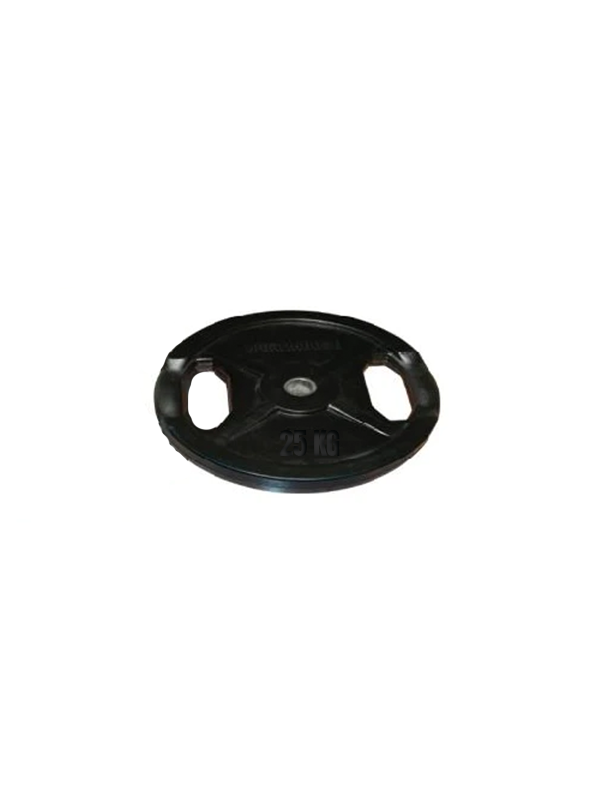 Discos não olímpicos, feitos de aço, revestidos de borracha e com pegas para fácil manuseamento. As suas pegas permitem um transporte fácil, bem como a sua utilização noutros tipos de exercícios, tais como abdominais com pesos ou rotações da anca.