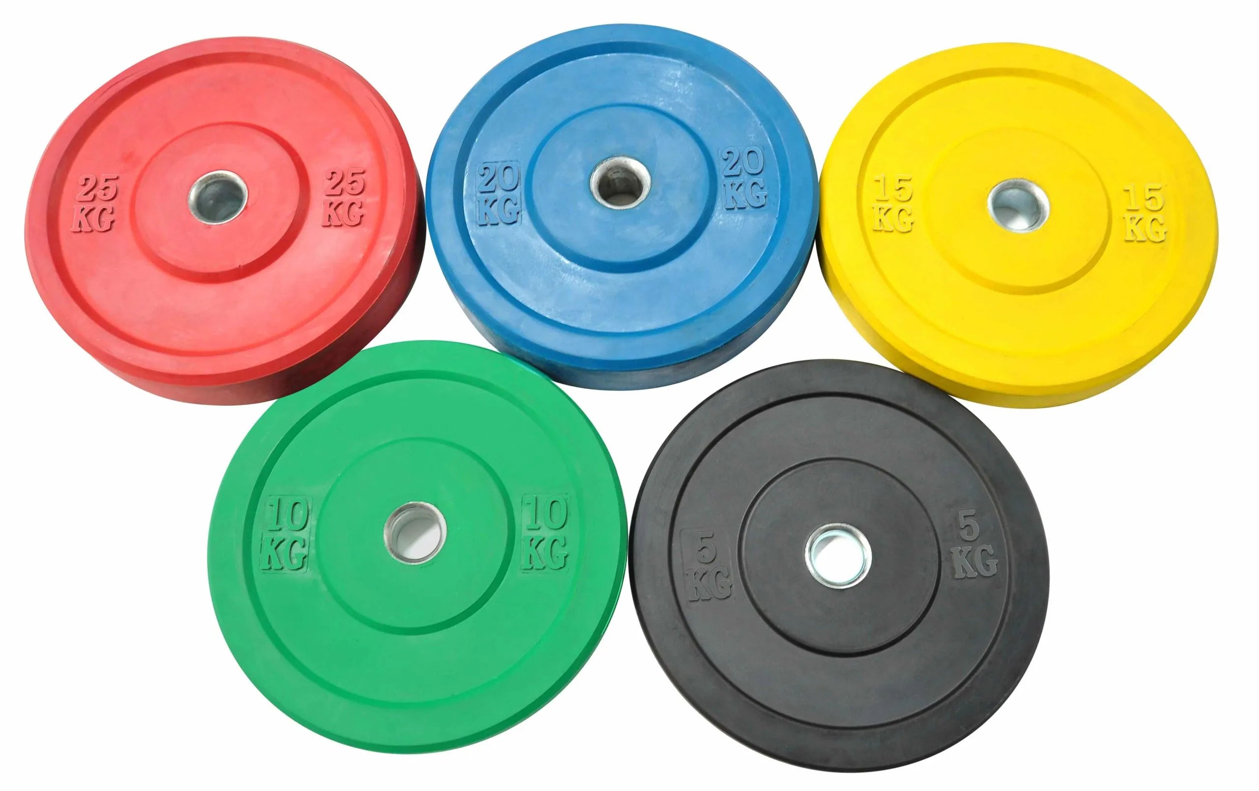 Os Discos Bumper para exercícios de crossfit, levantamento de peso, powerlifting, hiit, etc. que requerem um disco durável que pode ser atirado ao chão e resistir a fortes impactos. Para barras olímpicas de 50 mm.