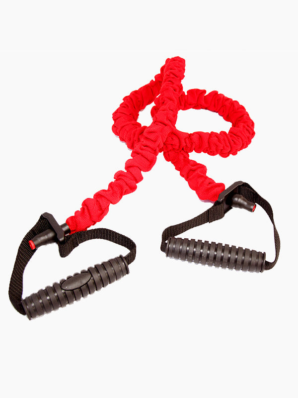 Elástico com manga externa que proporciona maior proteção durante o treino e garante que a resistência permaneça constante mesmo quando o elástico está em contato com o utilizador.