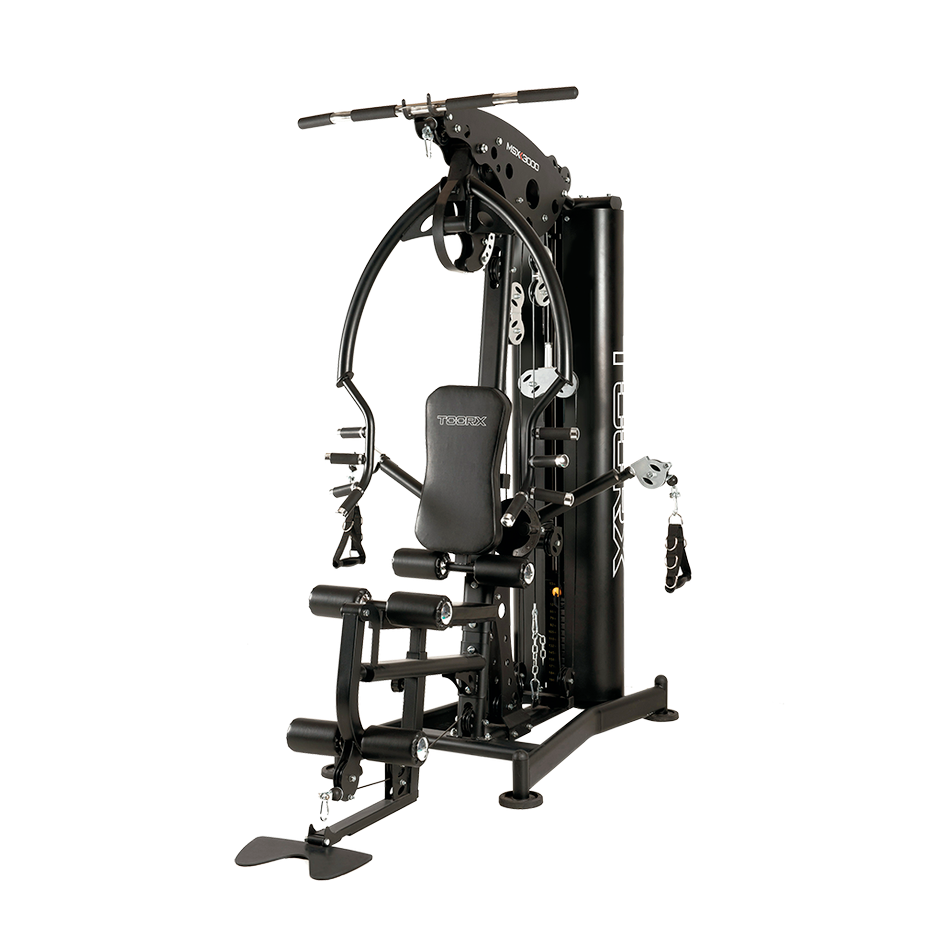 Funções: butterfly, remada, lat pull down, leg lift, chest press, biceps, triceps, cable cross, hand side lift, dorsal, deltóide, peitorais