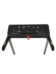 Equipada com uma consola simples, a passadeira possui 4 displays LED brancos, um sistema de deteção de frequência cardíaca embutido e um suporte para smartphone-tablet.