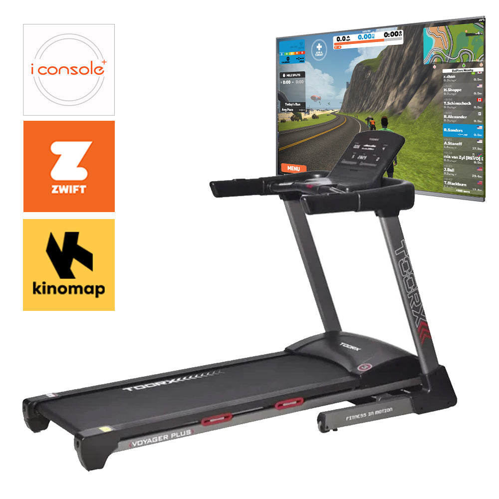 A passadeira é ainda App Ready 3.0, com sistema Bluetooth de última geração para poder interagir com aplicações de smartphones e tablets. É possível aproveitar as aplicações mais motivadoras e divertidas para o seu treino adquirindo a pen USB TRX App Gate 3.0 (opcional - não incluída). Inclui a app iConsole + Training com mapas, itinerários, plano de fitness e dados de treino. Também é compatível com as apps Zwift e Kinomap (subscrições não incluídas).