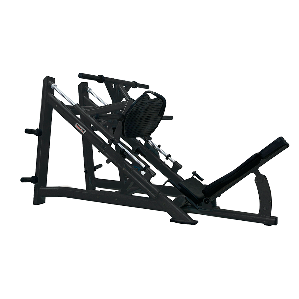 Prensa de pernas com encosto e inclinação ajustável em 3 posições.