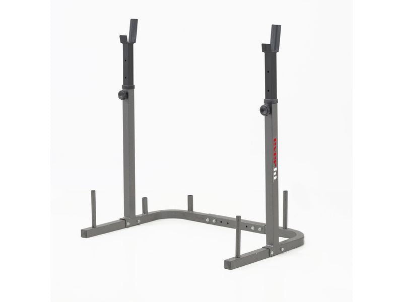 Este Suporte de Agachamento WBK-300 da EVERFIT está equipado com suportes para discos e barra, para serem usados dentro de sua própria casa.
