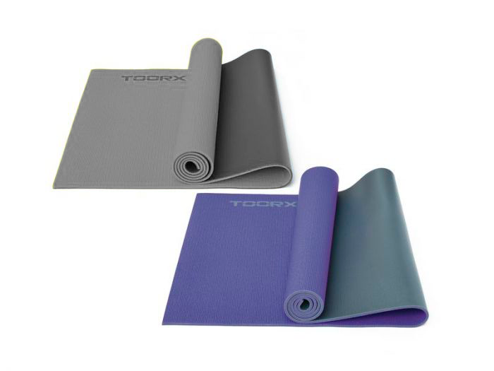 Tapete de Yoga bicolor com superfície antiderrapante para um treino seguro.